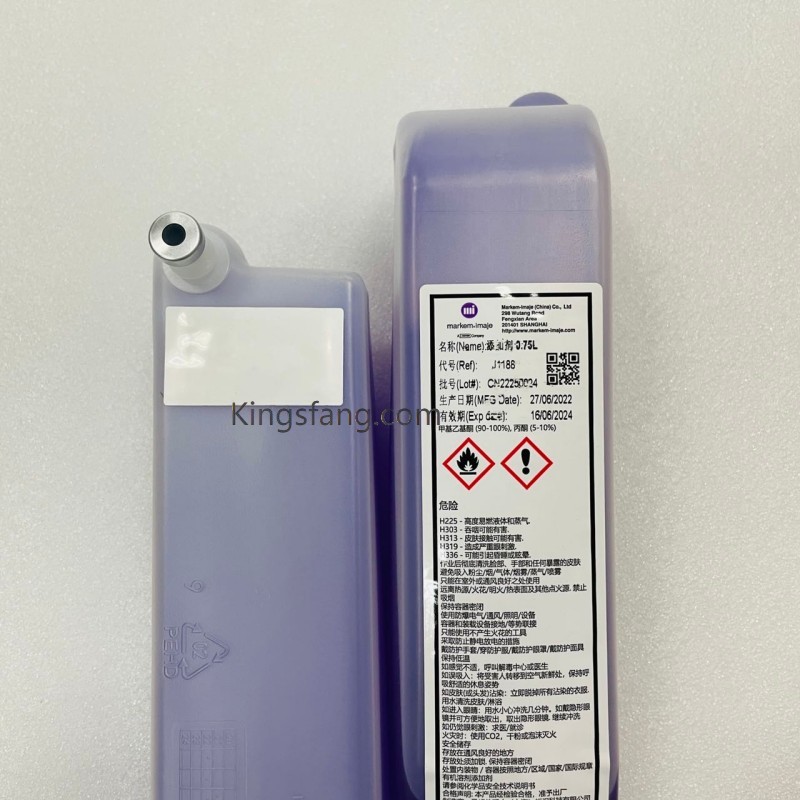 o Aditivo Imaje 8188O fluido de reposição (também conhecido como fluido de maquiagem) continua sendo um consumível vital à base de solvente para impressoras jato de tinta contínuo (CIJ) da Markem-Imaje. Ele é usado principalmente para manter a viscosidade adequada da tinta, repondo os solventes evaporados durante o processo de impressão.
